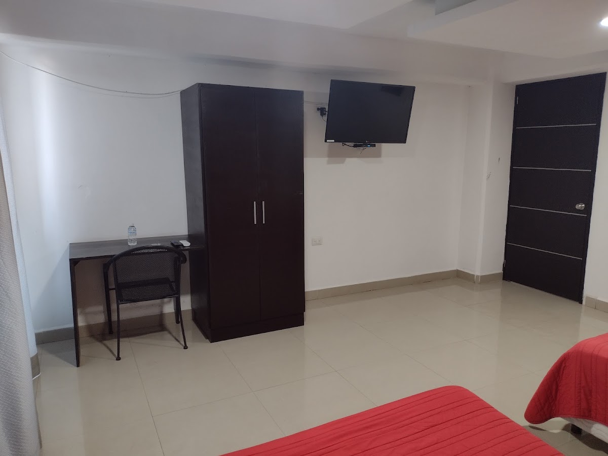 El lugar está muy bien ubicado, serca de la zona de bancos, un restaurante y una tienda en frente, tiene estacionamiento, wifi, pantalla plana con cable, te atiende Uber Eats y transporte Uber, aceptan pagos con tarjeta y emiten facturas, está limpio, amplio, con balcón, buen sistema de aire acondicionado y personal muy amable; si te lo recomiendo.